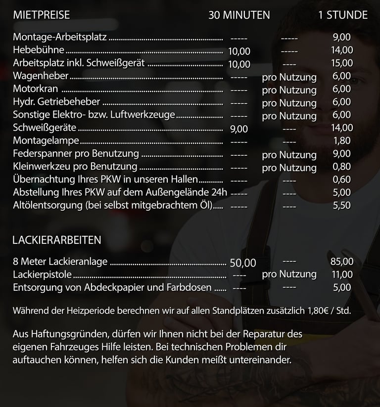 Besuchen Sie unsere Fachwerkstatt für Lackierarbeiten und mieten Sie Ihre eigene Hobbywerkstatt, ausgestattet mit allen notwendigen Werkzeugen.